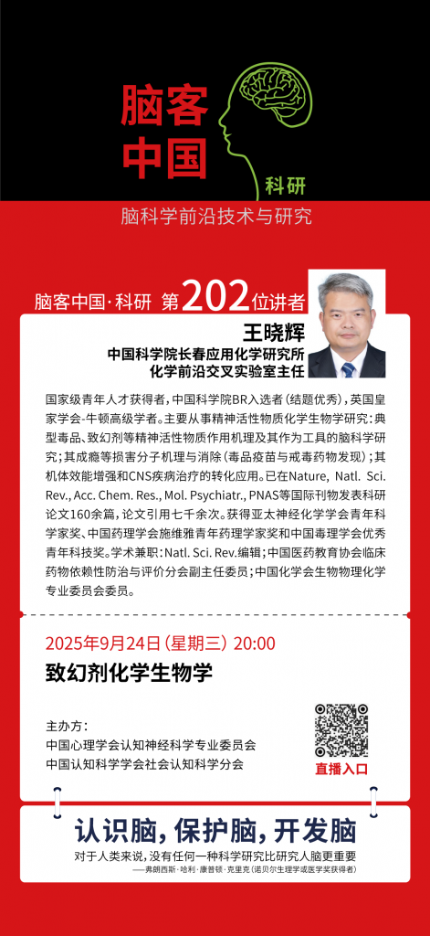 【直播预告】9月24日20点:王晓辉 | 致幻剂化学生物学